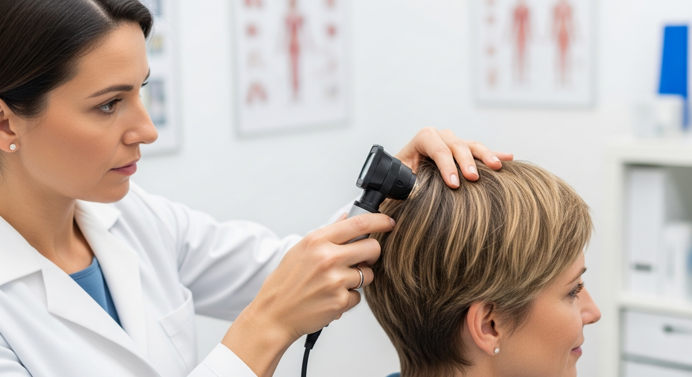 Psoriáza pokožky hlavy je chronické zánětlivé kožní onemocnění, které se projevuje zrychlenou proliferací kožních buněk. Tato kondice se obvykle projevuje jako červené plaky pokryté stříbřitými šupinami. Tyto plaky se mohou objevit na jakékoli části pokožky hlavy, včetně vlasové linie, čela, za ušima a na krku. Intenzita symptomů se liší u každého jedince; někteří mohou mít jen mírné šupinatění, zatímco jiní trpí silným svěděním, zánětem a rozsáhlými plaky. Diagnóza obvykle probíhá na základě vizuálního vyšetření dermatologem, který může v některých případech provést i biopsii kůže k potvrzení.