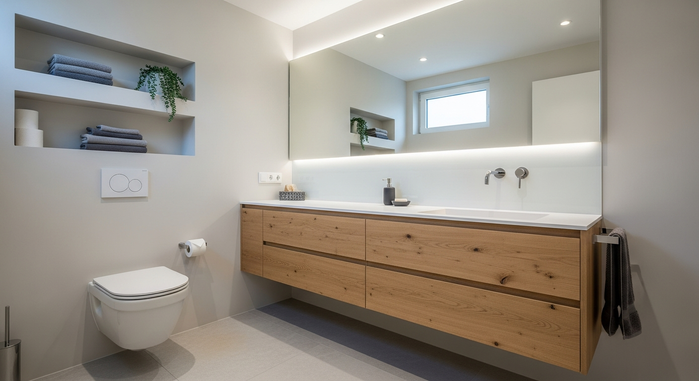 Funktionale Möbel und Stauraum in kleinen Bädern