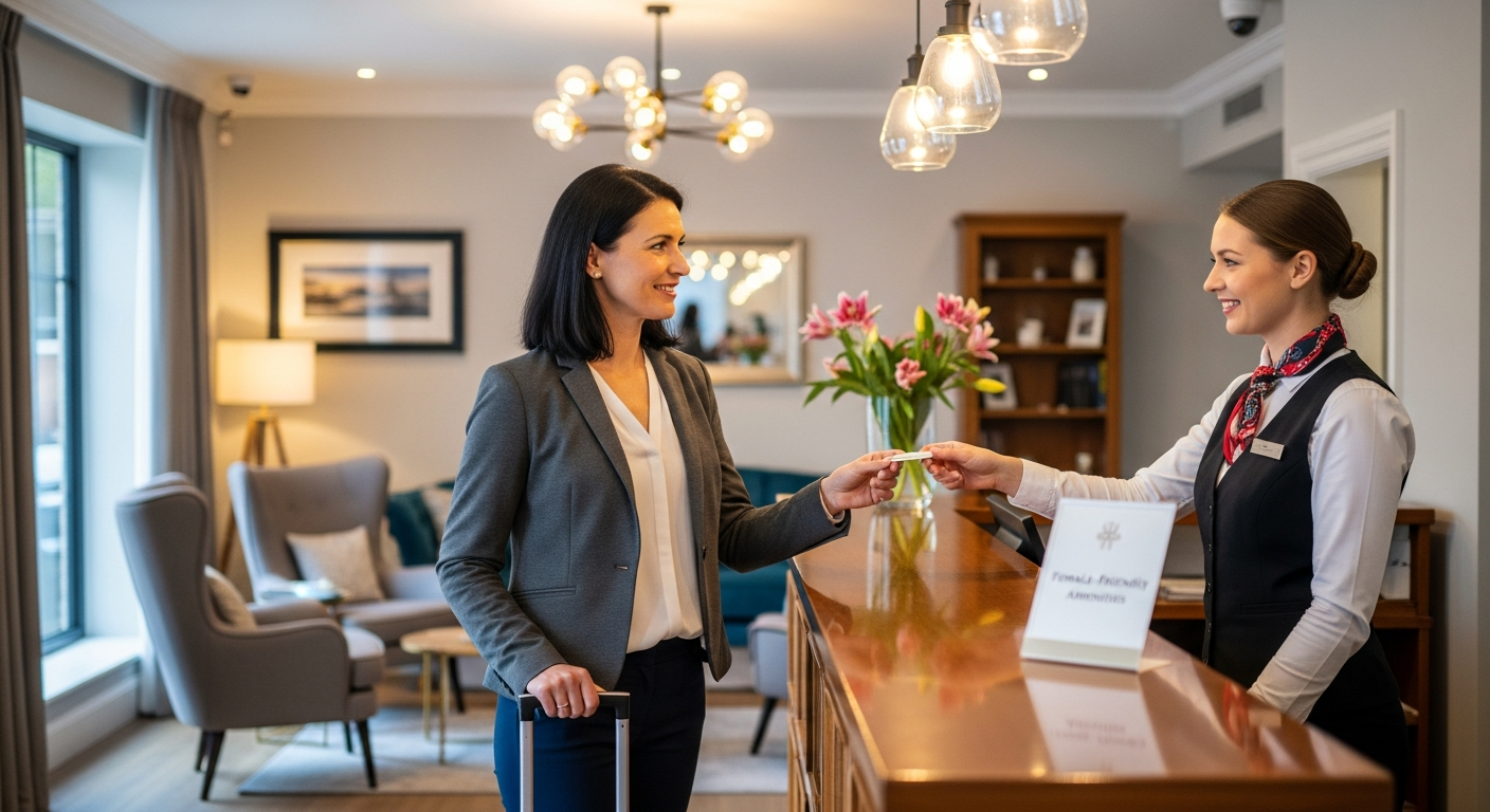 Οι γυναίκες ταξιδιώτες συχνά αναζητούν συγκεκριμένα χαρακτηριστικά που ενισχύουν την ασφάλεια και την άνεσή τους. Ένα βασικό στοιχείο είναι η ενισχυμένη ασφάλεια, η οποία μπορεί να περιλαμβάνει καλά φωτισμένους χώρους, κάμερες ασφαλείας, συστήματα κλειδώματος δωματίων υψηλής τεχνολογίας και, σε ορισμένες περιπτώσεις, αποκλειστικά γυναικείο προσωπικό σε ορισμένα τμήματα του ξενοδοχείου. Πέρα από την ασφάλεια, η ποιότητα των ανέσεων παίζει επίσης σημαντικό ρόλο. Προϊόντα περιποίησης υψηλής ποιότητας, μεγάλες καθαρές πετσέτες, στεγνωτήρες μαλλιών επαγγελματικού τύπου και καθρέφτες μακιγιάζ είναι συχνά περιζήτητα.