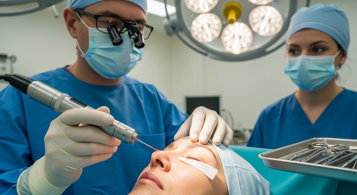 Η βλεφαροπλαστική είναι μια χειρουργική επέμβαση που αποσκοπεί στην αναμόρφωση των βλεφάρων, αφαιρώντας το περίσσιο δέρμα, λίπος και μυς που μπορεί να προκαλούν κουρασμένη ή γερασμένη όψη, ή ακόμα και να επηρεάζουν την όραση σε ακραίες περιπτώσεις. Η χρήση λέιζερ σε αυτή τη διαδικασία, γνωστή ως βλεφαροπλαστική με λέιζερ, αντικαθιστά το παραδοσιακό νυστέρι με μια δέσμη φωτός λέιζερ. Αυτό επιτρέπει στον χειρουργό να κάνει πολύ ακριβείς τομές, ελαχιστοποιώντας την αιμορραγία και τον τραυματισμό των γύρω ιστών. Η τεχνική αυτή μπορεί να εφαρμοστεί τόσο στα άνω όσο και στα κάτω βλέφαρα, αντιμετωπίζοντας αποτελεσματικά τις σακούλες, τις ρυτίδες και τη χαλάρωση του δέρματος.