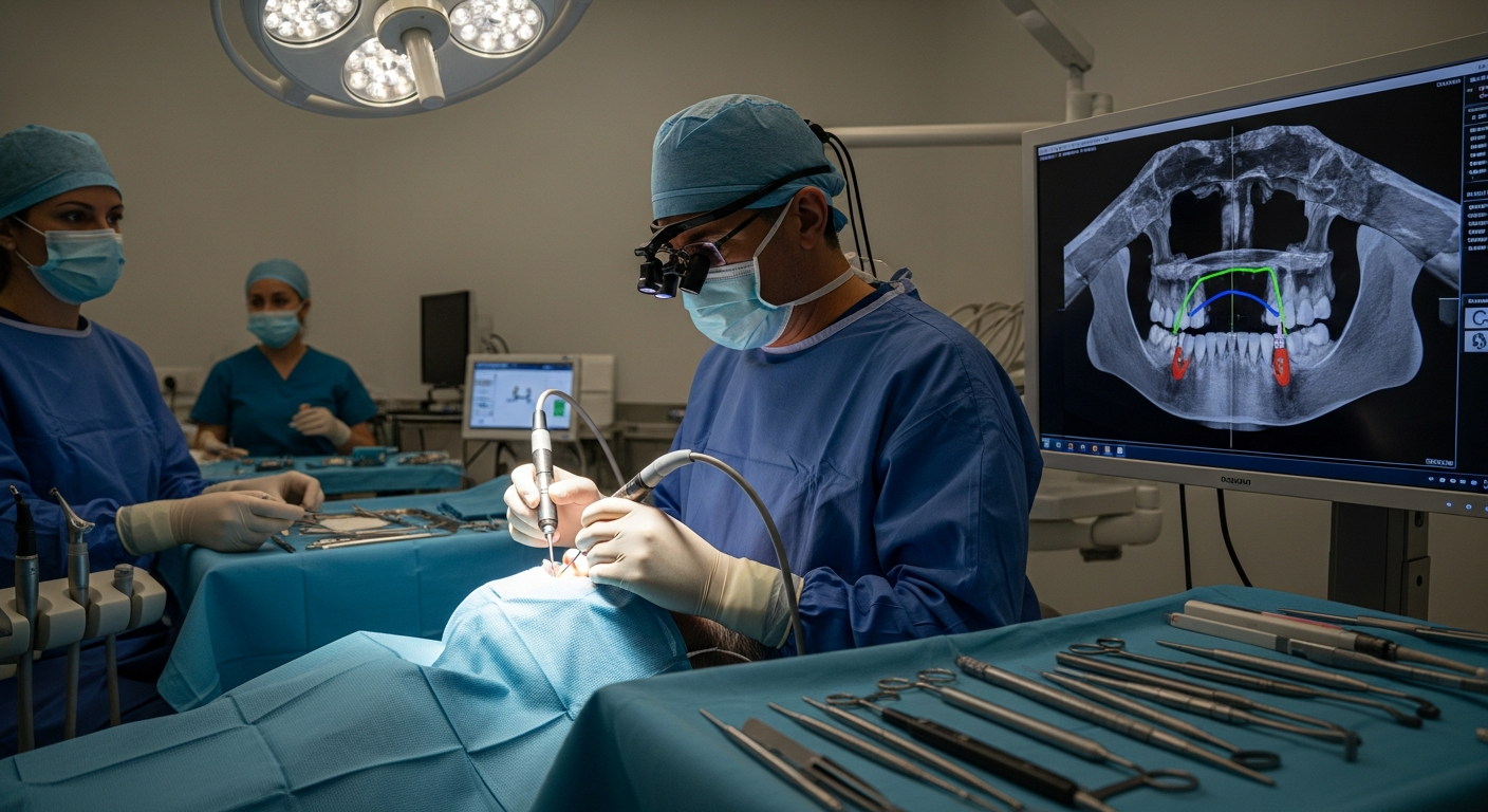 Πίσω από την αποτελεσματικότητα των σύγχρονων τεχνικών εμφύτευσης κρύβονται εξελιγμένες τεχνολογίες. Η τρισδιάστατη αξονική τομογραφία (CBCT) επιτρέπει στους οδοντιάτρους να δημιουργήσουν ένα λεπτομερές μοντέλο της γνάθου του ασθενούς, προσδιορίζοντας με ακρίβεια τη θέση των νεύρων, των ιγμορείων και την ποιότητα του οστού. Με βάση αυτά τα δεδομένα, ειδικά λογισμικά σχεδιάζουν την ιδανική θέση και γωνία για κάθε εμφύτευμα. Στη συνέχεια, μέσω της καθοδηγούμενης χειρουργικής, δημιουργούνται χειρουργικοί οδηγοί (surgical guides) που επιτρέπουν την ακριβή τοποθέτηση των εμφυτευμάτων με ελάχιστη παρέμβαση, συχνά χωρίς την ανάγκη για τομές στα ούλα.