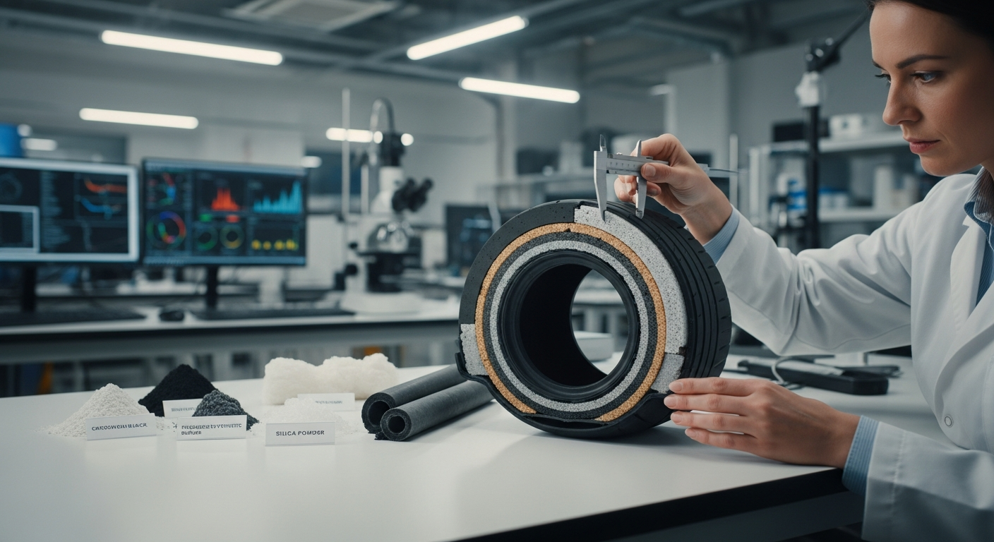 Σήμερα, ένα σύγχρονο ελαστικό αυτοκινήτου είναι ένα σύνθετο προϊόν που περιλαμβάνει πάνω από 200 διαφορετικά υλικά. Η βάση παραμένει ένα μείγμα φυσικού και συνθετικού καουτσούκ, αλλά η πραγματική καινοτομία έγκειται στην ενσωμάτωση πρόσθετων υλικών. Η σίλικα (πυριτική ένωση) έχει αντικαταστήσει εν μέρει την αιθάλη σε πολλά ελαστικά, προσφέροντας καλύτερη πρόσφυση σε βρεγμένο οδόστρωμα και μειωμένη αντίσταση κύλισης, συμβάλλοντας στην εξοικονόμηση καυσίμου. Επιπλέον, χρησιμοποιούνται χαλύβδινα κορδόνια για τη δομική ακεραιότητα, νάιλον και πολυεστέρας για ενίσχυση, καθώς και διάφορα χημικά πρόσθετα για την προστασία από την υπεριώδη ακτινοβολία και την οξείδωση. Οι τεχνολογίες συνεχώς εξελίσσονται, με την ανάπτυξη ελαστικών που μπορούν να αυτο-επιδιορθώνονται (self-sealing) ή να μειώνουν τον θόρυβο κύλισης.