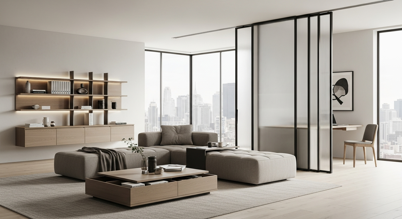Στους μικρούς χώρους, ο λειτουργικός σχεδιασμός είναι απαραίτητος για την επίτευξη άνεσης και αποδοτικότητας. Η επιλογή επίπλων που είναι αναδιπλούμενα, επεκτεινόμενα ή ενσωματωμένα σε τοίχους μπορεί να μεταμορφώσει ένα δωμάτιο. Ένα κρεβάτι που αναδιπλώνεται σε τοίχο, ένας γραφείο που κλείνει και εξαφανίζεται, ή ένα τραπέζι κουζίνας που επεκτείνεται μόνο όταν χρειάζεται, είναι παραδείγματα που επιτρέπουν στον ίδιο χώρο να εξυπηρετεί διαφορετικές λειτουργίες καθ’ όλη τη διάρκεια της ημέρας. Η χρήση ανοιχτών ραφιών και η επιλογή επίπλων με λεπτές γραμμές και ανοιχτά χρώματα μπορούν επίσης να δημιουργήσουν την ψευδαίσθηση μεγαλύτερου χώρου.