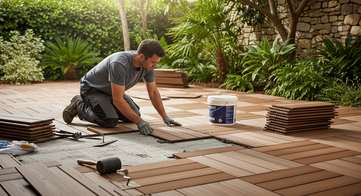 Το ξύλο, είτε σκληρό ξύλο (όπως το teak ή το ιρόκο) είτε πεπιεσμένο ξύλο (decking), προσδίδει ζεστασιά και φυσική ομορφιά. Ωστόσο, απαιτεί τακτική συντήρηση, όπως λάδωμα ή βερνίκωμα, για να διατηρήσει την εμφάνισή του και να προστατευθεί από την υγρασία και τους μικροοργανισμούς. Τα συνθετικά υλικά, όπως το WPC (Wood Plastic Composite), συνδυάζουν την εμφάνιση του ξύλου με την ανθεκτικότητα του πλαστικού, προσφέροντας χαμηλή συντήρηση και υψηλή αντοχή στις καιρικές συνθήκες, χωρίς να απαιτούν βαφή ή στεγανοποίηση. Άλλες επιλογές περιλαμβάνουν το σκυρόδεμα, το οποίο μπορεί να χρωματιστεί ή να σφραγιστεί για διάφορες εμφανίσεις, και τα υλικά από καουτσούκ, ιδανικά για παιδικές χαρές ή χώρους με ανάγκη για απορρόφηση κραδασμών.