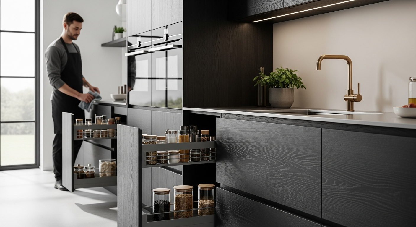 Μοντέρνα έπιπλα κουζίνας με έμφαση στη λεπτομέρεια