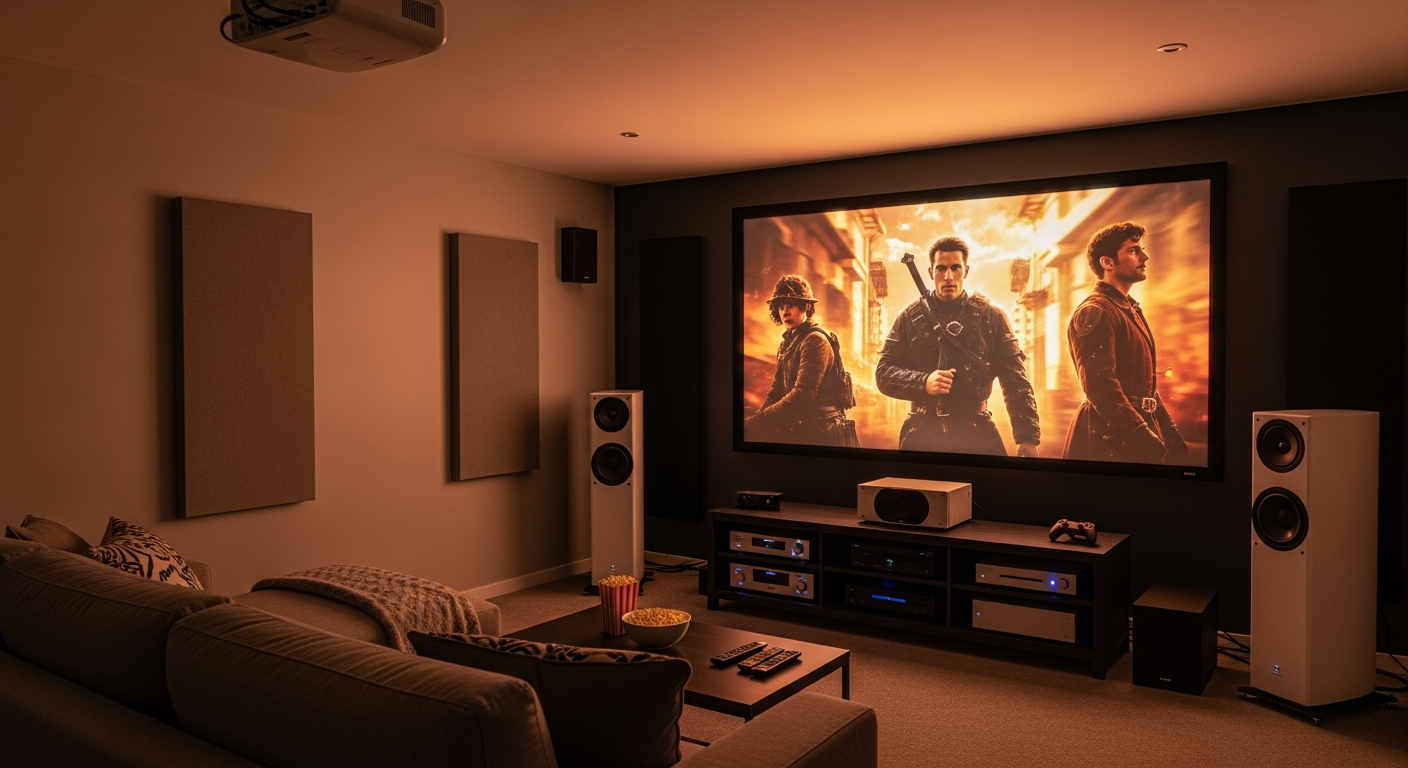 Η δημιουργία ενός ολοκληρωμένου συστήματος οικιακού κινηματογράφου απαιτεί προσεκτικό σχεδιασμό. Πέρα από τον ήχο και την εικόνα, η συνολική ρύθμιση (setup) περιλαμβάνει τη σωστή τοποθέτηση των ηχείων, την ακουστική επεξεργασία του χώρου και την επιλογή του κατάλληλου δέκτη/ενισχυτή (AV receiver) που θα συνδέσει όλα τα στοιχεία. Ο δέκτης είναι η καρδιά του συστήματος, διαχειριζόμενος τις πηγές βίντεο και ήχου και τροφοδοτώντας τα ηχεία. Για τους λάτρεις των παιχνιδιών, η χαμηλή καθυστέρηση εισόδου (low input lag) στην οθόνη ή τον προβολέα και η υποστήριξη υψηλών ρυθμών ανανέωσης είναι βασικές παράμετροι. Η εύκολη πρόσβαση σε υπηρεσίες streaming και η συμβατότητα με διάφορες πηγές ψυχαγωγίας είναι επίσης σημαντική για μια σύγχρονη εμπειρία.