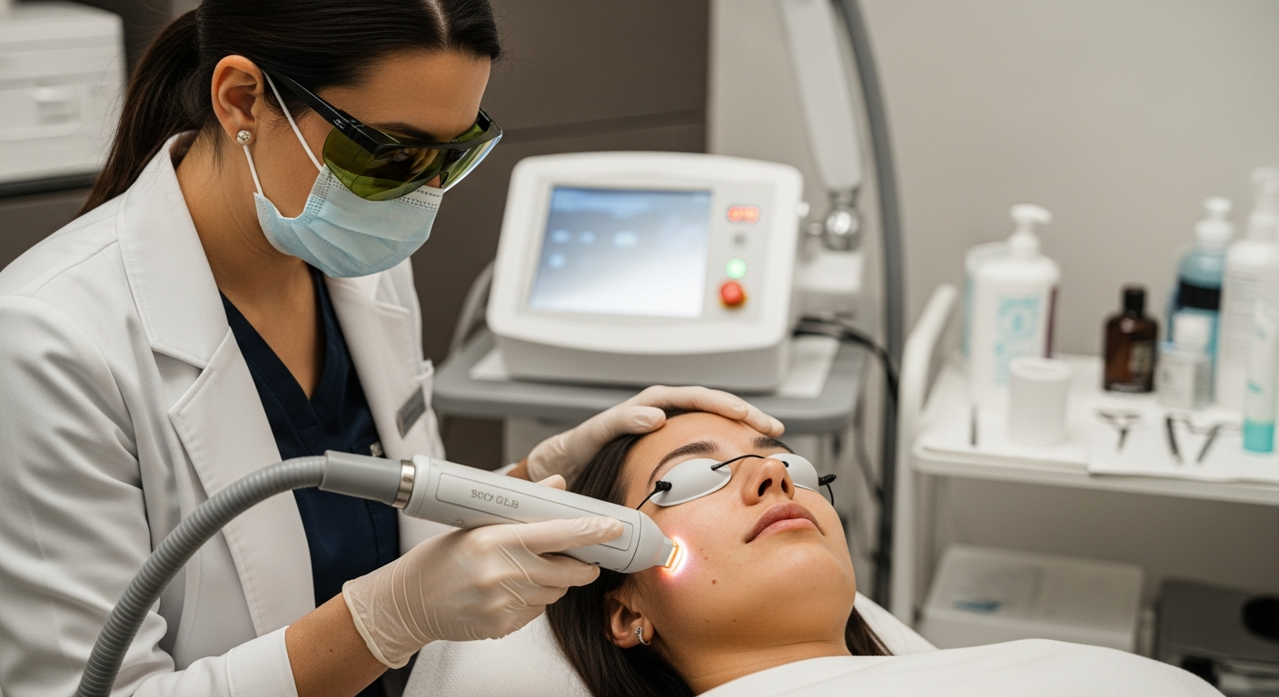 Για την αντιμετώπιση των σκούρων κηλίδων και της υπερμελάγχρωσης, υπάρχουν πολλές δερματολογικές θεραπείες που στοχεύουν στη μείωση της μελανίνης και στην ανανέωση του δέρματος. Οι χημικές απολέπιση (peelings) χρησιμοποιούν οξέα για να απομακρύνουν τα επιφανειακά στρώματα του δέρματος, αποκαλύπτοντας μια πιο φωτεινή και ομοιόμορφη επιδερμίδα. Οι θεραπείες λέιζερ, όπως το λέιζερ Q-switched ή το Fraxel, στοχεύουν επιλεκτικά τη μελανίνη, διασπώντας την σε μικρότερα σωματίδια που αποβάλλονται από τον οργανισμό. Η μικροδερμοαπόξεση είναι μια πιο ήπια μέθοδος που χρησιμοποιεί μικροκρυστάλλους για την απομάκρυνση των νεκρών κυττάρων. Κάθε θεραπεία έχει συγκεκριμένες ενδείξεις και απαιτεί αξιολόγηση από δερματολόγο για την επιλογή της καταλληλότερης προσέγγισης, με στόχο την αποκατάσταση της διαύγειας και της λάμψης του δέρματος.