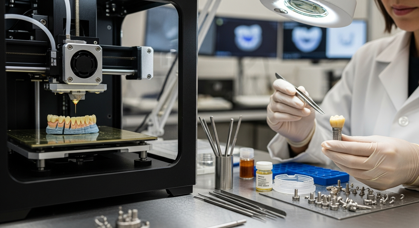 Πέρα από τις καινοτομίες στα εμφυτεύματα χωρίς βίδες, ο τομέας της οδοντικής αποκατάστασης αγκαλιάζει και άλλες πρωτοποριακές τεχνολογίες. Η ψηφιακή οδοντιατρική, με τη χρήση ενδοστοματικών σαρωτών, λογισμικού σχεδιασμού (CAD) και μηχανών κατασκευής (CAM), επιτρέπει την ακριβέστερη διάγνωση, τον σχεδιασμό και την κατασκευή προσθετικών εργασιών. Η τρισδιάστατη εκτύπωση (3D printing) χρησιμοποιείται για την παραγωγή εξατομικευμένων εμφυτευμάτων, χειρουργικών οδηγών και προσθετικών αποκαταστάσεων με πρωτοφανή ακρίβεια. Επίσης, η ανάπτυξη βιοϋλικών, όπως κεραμικά με βελτιωμένες μηχανικές ιδιότητες και βιοσυμβατότητα, καθώς και υλικά που ενισχύουν την αναγέννηση των ιστών, ανοίγει νέους ορίζοντες. Τέλος, η χρήση μικρορομποτικής και τεχνητής νοημοσύνης αναμένεται να φέρει επανάσταση στον τρόπο που εκτελούνται οι θεραπείες και λαμβάνονται οι αποφάσεις.