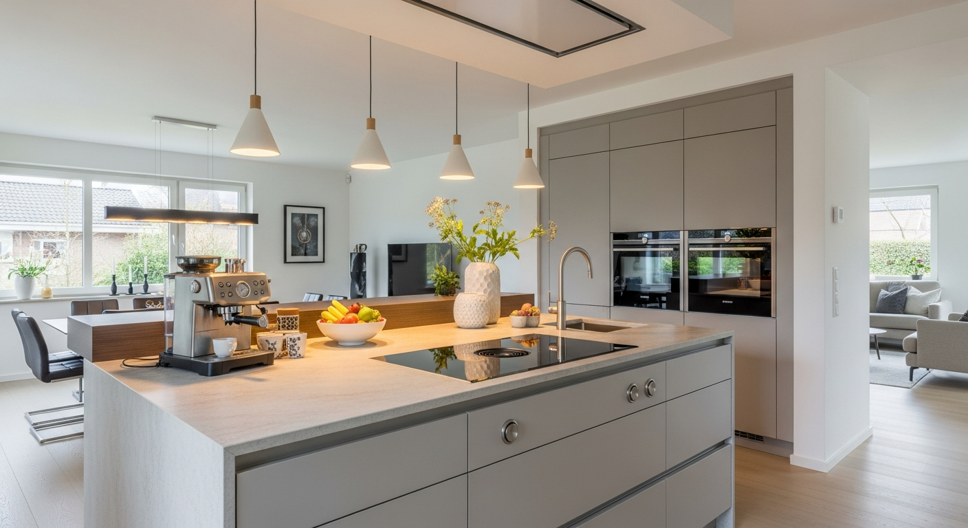 Η επιλογή των υλικών είναι καθοριστική για την αντοχή, την αισθητική και τη συντήρηση των μοντέρνων κουζινών. Υλικά όπως ο χαλαζίας, ο γρανίτης και οι συμπαγείς ακρυλικές επιφάνειες (π.χ. Corian) είναι δημοφιλή για τους πάγκους λόγω της αντοχής τους στις γρατσουνιές, τη θερμότητα και τους λεκέδες, καθώς και της εύκολης συντήρησής τους. Για τις προσόψεις των ντουλαπιών, το MDF με λάκα, ο βακελίτης ή ο καπλαμάς προσφέρουν μια ποικιλία υφών και φινιρισμάτων.