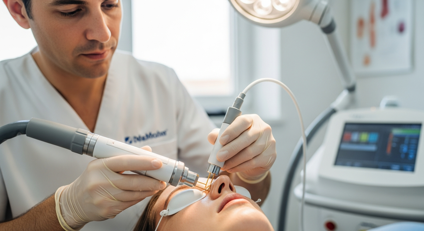 Οι θεραπείες λέιζερ αποτελούν μια μη επεμβατική ή ελάχιστα επεμβατική προσέγγιση για την ανάπλαση της περιοχής των ματιών. Χρησιμοποιούν εστιασμένη ενέργεια φωτός για να αντιμετωπίσουν διάφορα προβλήματα, όπως λεπτές γραμμές, ρυτίδες, ανομοιόμορφο τόνο δέρματος και χαλάρωση. Υπάρχουν διάφοροι τύποι λέιζερ, όπως τα κλασματικά λέιζερ (fractional lasers) και τα ablative λέιζερ, τα οποία λειτουργούν με διαφορετικούς τρόπους. Ορισμένα λέιζερ διεγείρουν την παραγωγή κολλαγόνου, ενώ άλλα αφαιρούν επιφανειακά στρώματα του δέρματος για να αποκαλύψουν μια πιο λεία και φρέσκια επιδερμίδα. Η επιλογή του κατάλληλου λέιζερ εξαρτάται από τον τύπο του δέρματος και το μέγεθος του προβλήματος.