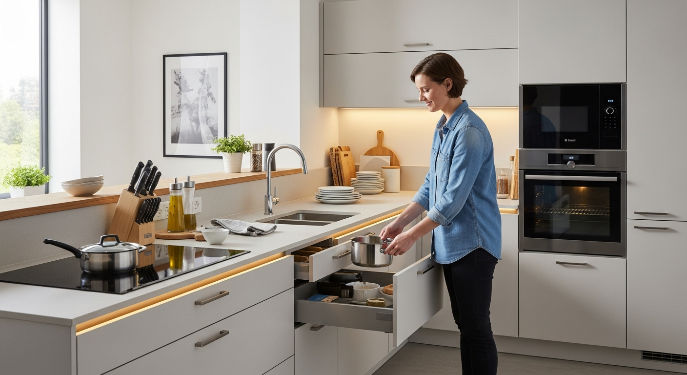 Η ανάμειξη διαφορετικών τύπων επίπλων μπορεί επίσης να αποδειχθεί οικονομική. Για παράδειγμα, μπορείτε να επιλέξετε ντουλάπια βάσης κατά παραγγελία για μέγιστη λειτουργικότητα και αντοχή, και να συνδυάσετε με πιο οικονομικά έτοιμα ή modular ντουλάπια τοίχου. Η εκτέλεση μέρους της εγκατάστασης ή της συναρμολόγησης από τον ίδιο τον ιδιοκτήτη (DIY) μπορεί να μειώσει σημαντικά το κόστος εργασίας. Τέλος, η αναζήτηση προσφορών, εκπτώσεων ή προϊόντων σε απόσυρση, καθώς και η επιλογή ανοιχτών ραφιών αντί για κλειστά ντουλάπια τοίχου, είναι έξυπνοι τρόποι για να επιτευχθεί εξοικονόμηση χρημάτων χωρίς να θυσιαστεί η λειτουργικότητα ή η αισθητική.