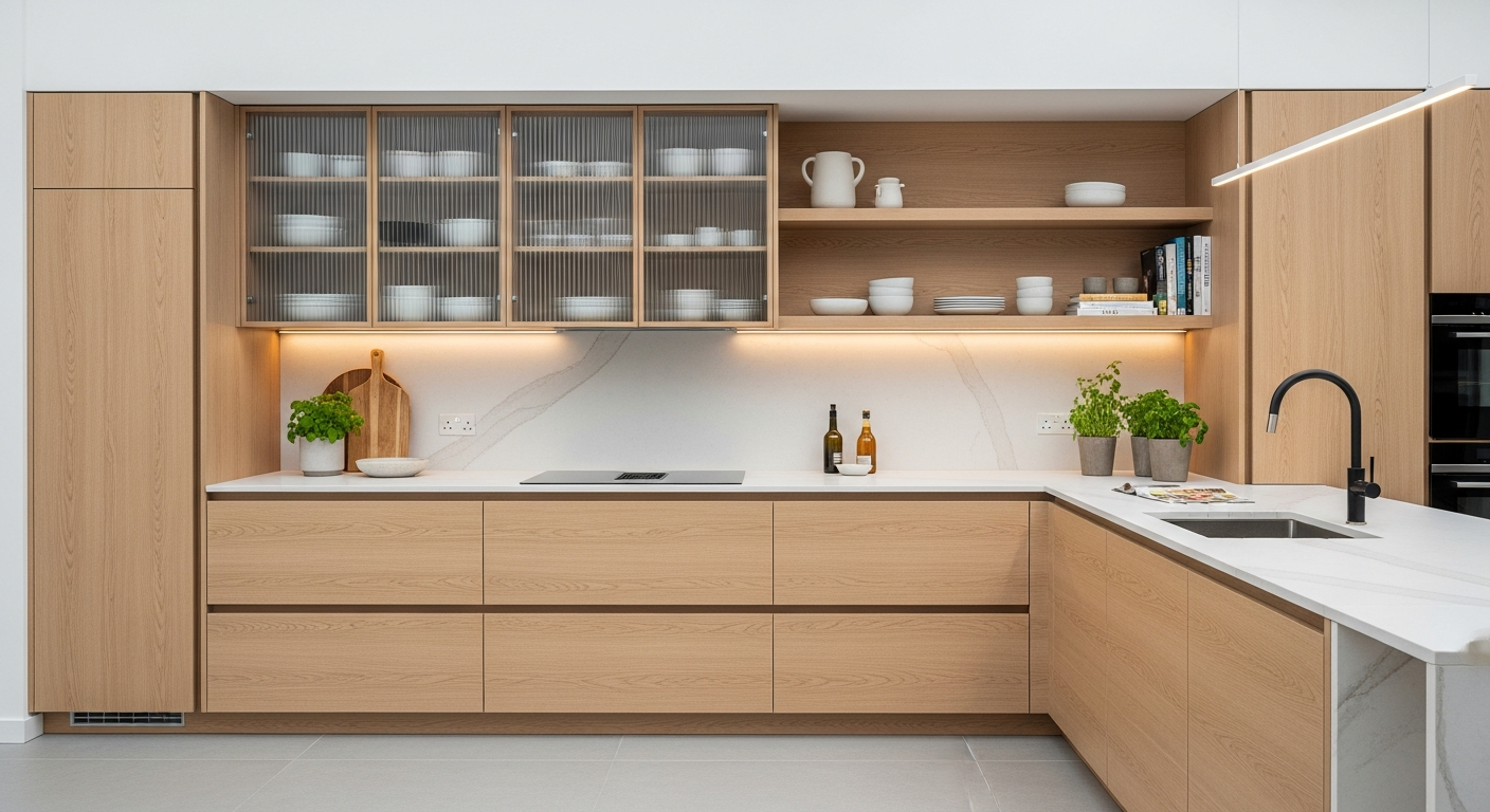 Οι σύγχρονες ιδέες για ντουλάπια κουζίνας εστιάζουν στην απλότητα, την καθαρότητα των γραμμών και την ενσωμάτωση έξυπνων λύσεων αποθήκευσης. Πλέον, το ζητούμενο δεν είναι μόνο η αποθήκευση, αλλά και η δημιουργία ενός χώρου που είναι ευχάριστος στην όψη και εύκολος στη χρήση. Αυτό περιλαμβάνει την υιοθέτηση μινιμαλιστικών σχεδίων, την απουσία χειρολαβών για μια πιο ενιαία εμφάνιση, και τη χρήση ουδέτερων χρωμάτων που δημιουργούν μια αίσθηση ηρεμίας και ευρυχωρίας. Παράλληλα, υπάρχει μια αυξανόμενη τάση προς την εξατομίκευση, επιτρέποντας στους ιδιοκτήτες να εκφράσουν το προσωπικό τους στυλ μέσω της επιλογής υλικών, χρωμάτων και διατάξεων που ταιριάζουν απόλυτα στις ανάγκες τους. Οι ιδέες αυτές αναδεικνύουν την κουζίνα σε έναν χώρο όχι μόνο για μαγείρεμα, αλλά και για κοινωνικοποίηση και χαλάρωση.