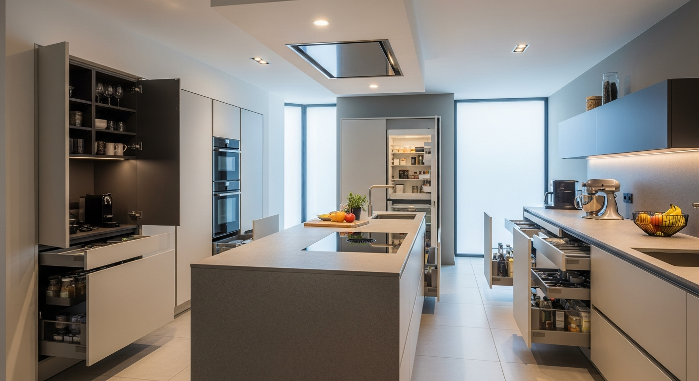 Λύσεις αποθήκευσης και design σε σύγχρονες κουζίνες.