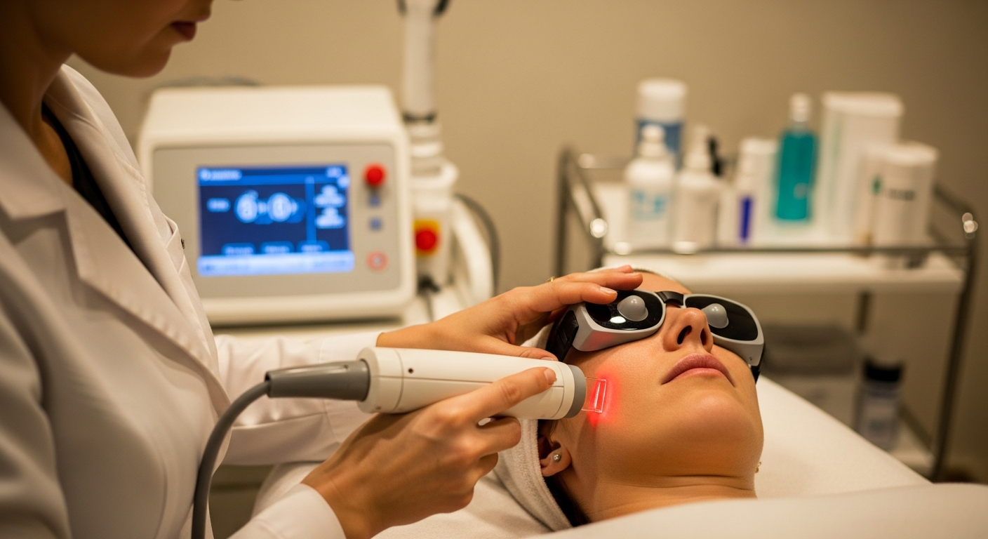 Η θεραπεία με λέιζερ για τη μείωση των κηλίδων και της υπερμελάγχρωσης έχει εξελιχθεί σημαντικά. Διαφορετικοί τύποι λέιζερ χρησιμοποιούνται ανάλογα με τον τύπο και το βάθος της δυσχρωμίας. Τα λέιζερ Q-switched, τα PicoSure και τα IPL (Intense Pulsed Light) είναι μερικές από τις συνηθέστερες τεχνολογίες. Αυτές οι συσκευές εκπέμπουν παλμούς φωτός συγκεκριμένου μήκους κύματος που απορροφώνται επιλεκτικά από τη μελανίνη, χωρίς να βλάπτουν τον περιβάλλοντα ιστό. Η ενέργεια του λέιζερ διασπά τη μελανίνη σε μικρότερα σωματίδια, τα οποία στη συνέχεια αποβάλλονται από το σώμα. Η διαδικασία αυτή συμβάλλει στην ομοιομορφία του τόνου, στην αποκατάσταση της διαύγειας και στην επίτευξη μιας πιο λαμπερής επιδερμίδας. Ο αριθμός των απαιτούμενων συνεδριών εξαρτάται από την έκταση και τη φύση των σημαδιών.