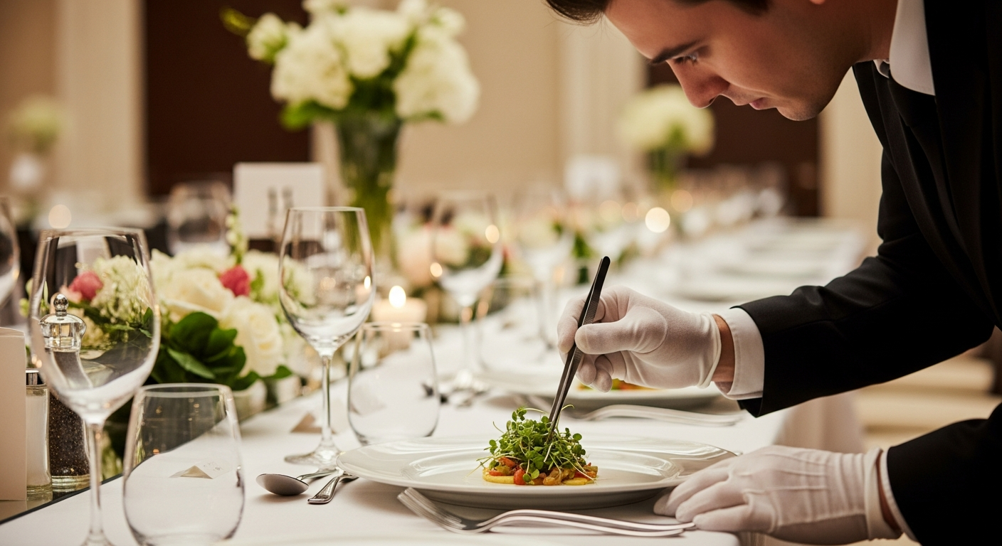 Más allá de la comida en sí, la experiencia culinaria se define por la calidad del servicio. Un equipo de catering profesional se encarga de cada detalle, desde la configuración inicial hasta la limpieza final. Esto incluye personal atento y capacitado que sirve la comida de manera eficiente y con cortesía, asegurando que los invitados se sientan bien atendidos durante todo el evento. La coordinación impecable entre la cocina y el personal de sala es fundamental para el flujo armónico del servicio.