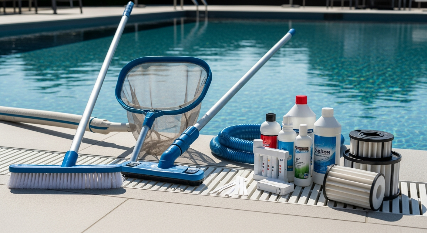Equipo básico para el mantenimiento regular de piscinas