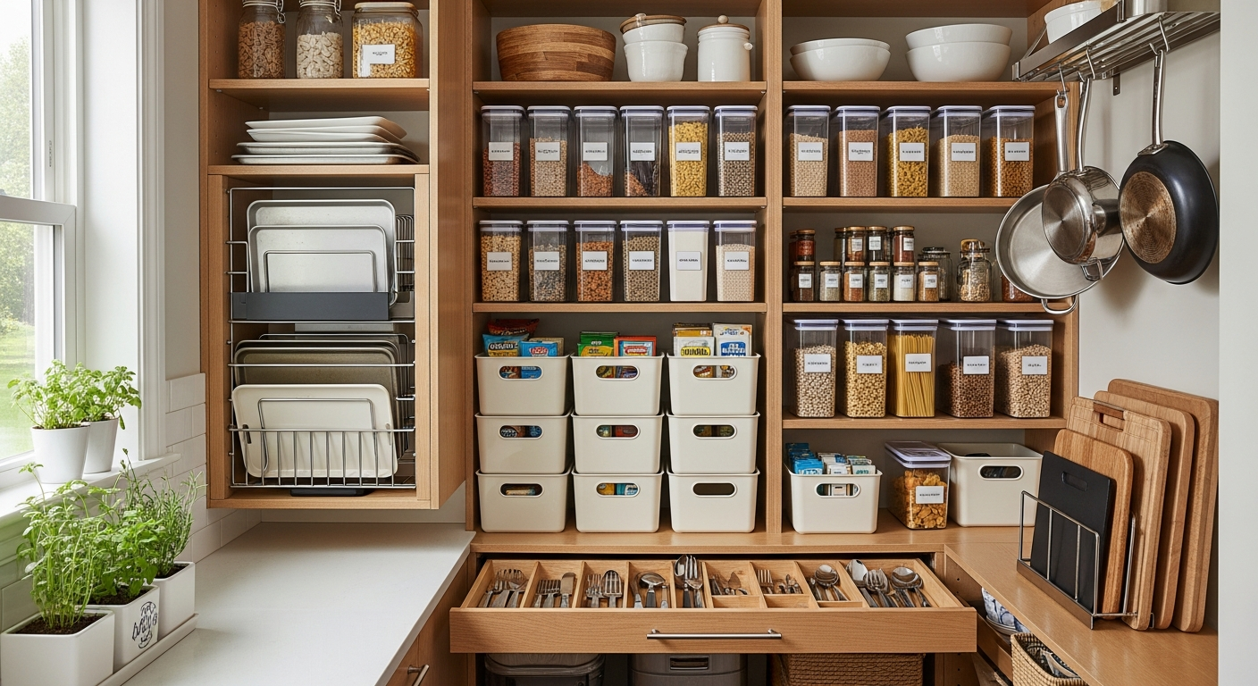 Les garde-manger et les armoires sont souvent des points chauds pour le désordre. L’intégration de racks spécifiquement conçus pour ces zones peut faire une différence significative. Des étagères réglables, des paniers coulissants et des supports pour boîtes de conserve peuvent aider à catégoriser et à organiser les provisions alimentaires. Pour les armoires, les supports à assiettes, les range-verres suspendus et les organisateurs de couvercles peuvent optimiser l’espace vertical et horizontal, facilitant le rangement et l’accès à la vaisselle et aux ustensiles. Ces outils de gestion permettent de maintenir un ordre durable.