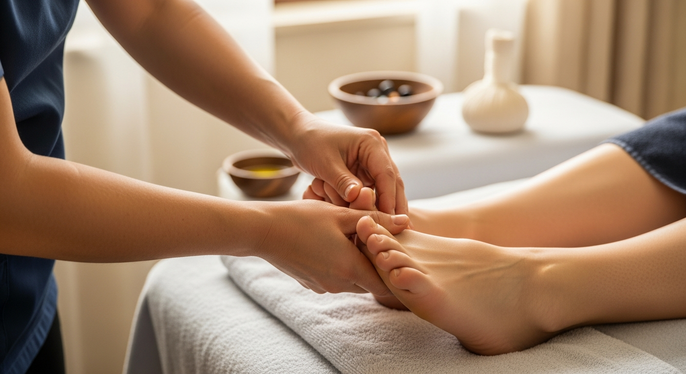 La réflexologie est une forme de thérapie basée sur le principe que des points de pression spécifiques sur les pieds correspondent à différents organes et systèmes du corps. En appliquant une pression sur ces points, un praticien peut stimuler les fonctions corporelles correspondantes, favorisant l’équilibre et l’auto-guérison. Cette approche peut aider à soulager la tension, à améliorer la circulation et à promouvoir une invigoration générale. Même un simple massage non réflexologique des soles et des muscles des pieds peut avoir des effets bénéfiques considérables, en stimulant les terminaisons nerveuses et en procurant une sensation de confort immédiat.