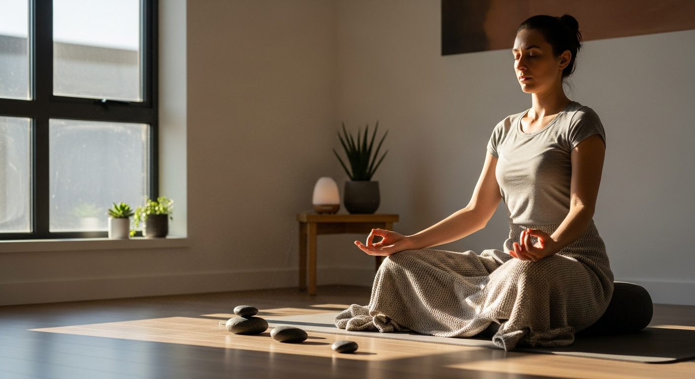 נשימה היא עוגן מרכזי בתרגול מדיטציה, והיא בעלת השפעה ישירה על מערכת העצבים. תרגילי נשימה מודעת, כמו נשימה סרעפתית איטית ועמוקה, מפעילים את מערכת העצבים הפאראסימפתטית, האחראית על מצב “מנוחה ועיכול”. הפעלת מערכת זו מורידה את קצב הלב, מרגיעה את המחשבה ומשרה תחושת רוגע כללית. לפני השינה, התמקדות בנשימה יכולה לשמש ככלי רב עוצמה להשקטת התודעה. התבוננות בקצב הנשימה, בתחושת האוויר הנכנס והיוצא, מסייעת לנתק את המחשבה ממעגל הדאגות ומעגנת אותה ברגע ההווה, מה שמקל על המעבר לשינה.