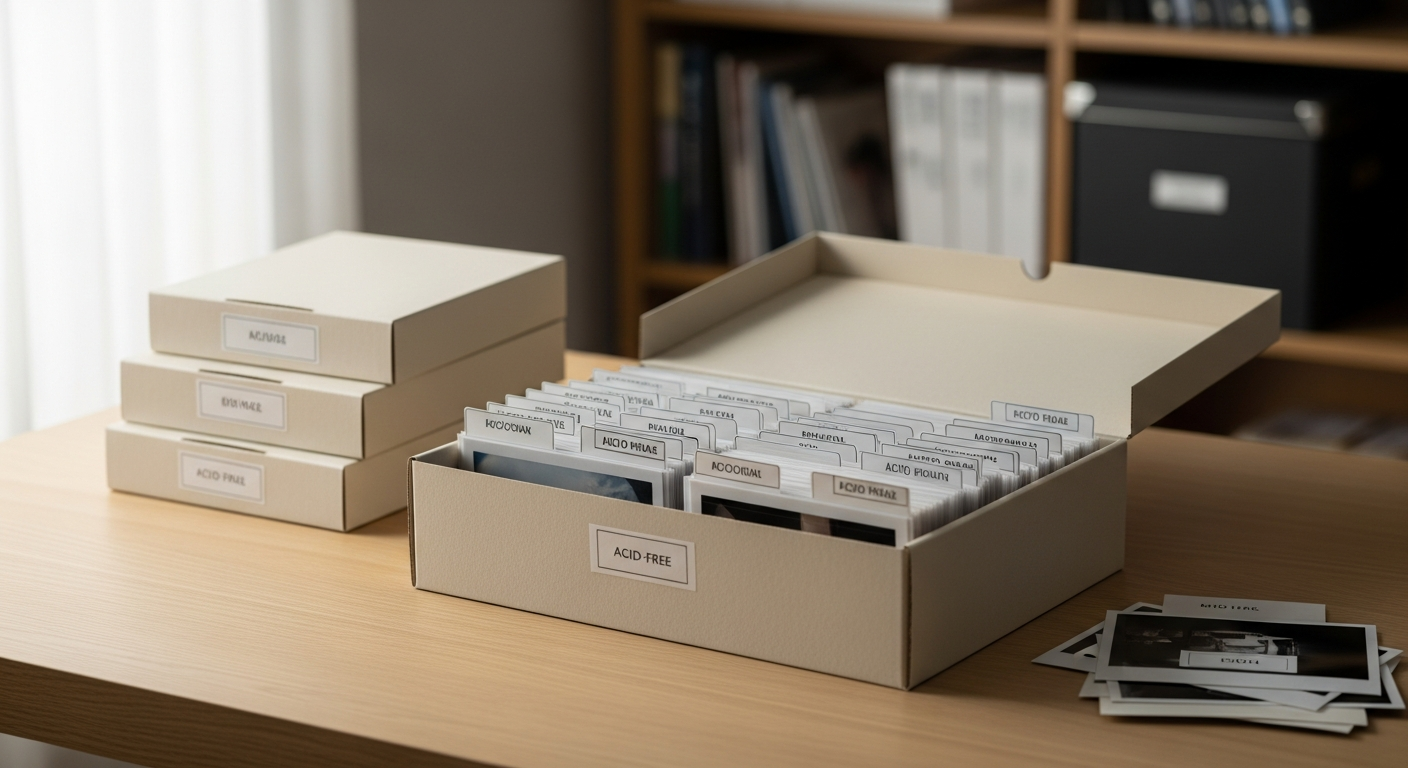 La scelta dei contenitori giusti è un elemento critico per la conservazione a lungo termine delle tue stampe fotografiche. È fondamentale optare per materiali d’archivio, che sono privi di acidi e lignina. Questi elementi chimici, spesso presenti in cartone e plastica comuni, possono reagire con le immagini nel tempo, causando ingiallimento, sbiadimento e deterioramento. Le scatole per fotografie d’archivio, le buste protettive in polipropilene e gli album con pagine sicure sono opzioni eccellenti. Questi contenitori di archiviazione sono progettati per offrire protezione contro i raggi UV, la polvere e le fluttuazioni di umidità. Evita categoricamente scatole di cartone ordinarie, buste di plastica non certificate per l’archivio o album con adesivi acidi, poiché accelerano il degrado delle fotografie. Considera anche la dimensione dei contenitori, assicurandoti che siano adatti alle dimensioni delle tue stampe per prevenire piegature o danni.