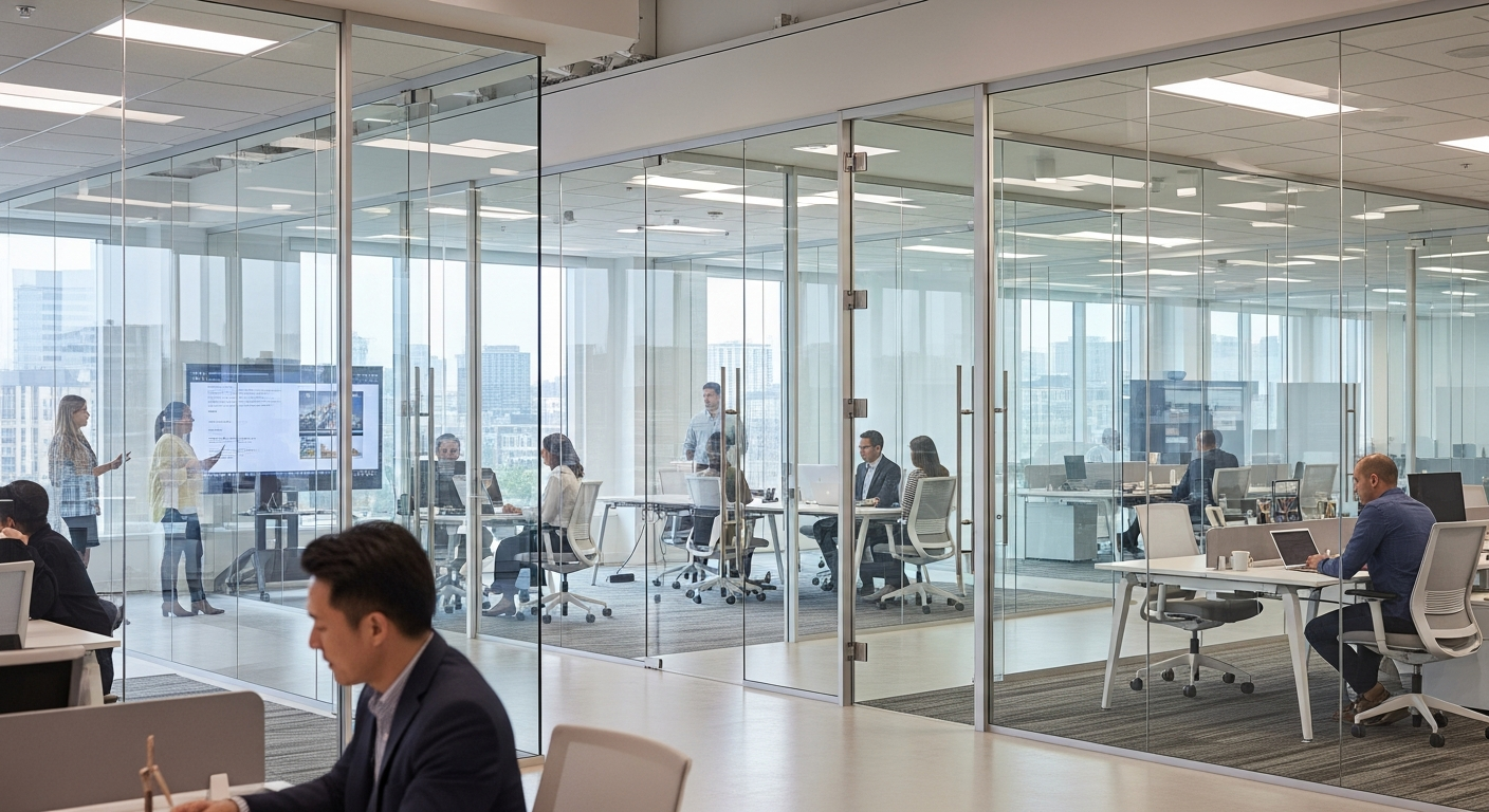 Le pareti divisorie in vetro trovano ampio impiego negli uffici moderni, dove la necessità di bilanciare privacy e collaborazione è costante. Consentono di creare postazioni di lavoro individuali, sale riunioni e uffici direzionali che beneficiano di isolamento acustico senza compromettere la visibilità o la luce. Questo favorisce un ambiente di lavoro dinamico e trasparente, in linea con le moderne filosofie aziendali.