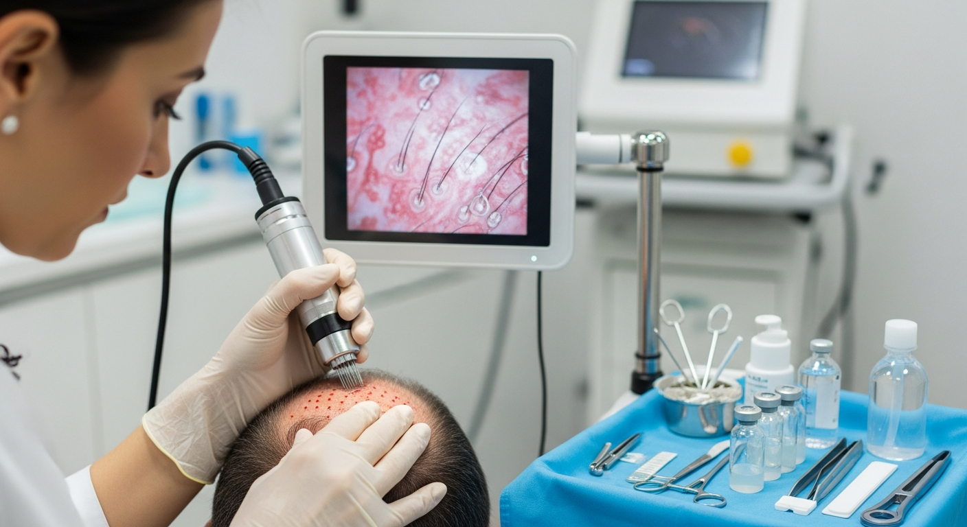 - Folikulu vienību ekstrakcija (FUE): Šī metode ietver individuālu matu folikulu izņemšanu no donoru zonas (parasti pakauša vai sānu daļas, kur mati ir izturīgāki pret zudumu) un to transplantāciju uz saņēmējzonu. FUE ir minimāli invazīva, neatstāj lineāras rētas un nodrošina dabisku rezultātu.