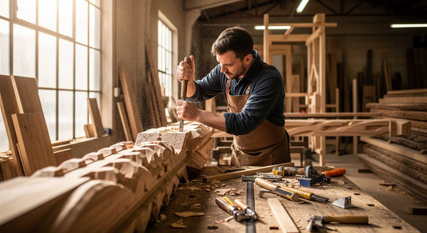 Naast grotere constructies is fijn timmerwerk een specialisme dat de ambachtelijke precisie van een timmerman benadrukt. Dit omvat de vervaardiging en installatie van deuren, ramen, kasten, trappen en sierlijsten. Het vereist een uitzonderlijk oog voor detail en een constante focus op kwaliteit. Het doel is niet alleen functionaliteit, maar ook esthetiek, waarbij elk stuk hout zorgvuldig wordt bewerkt en afgewerkt. Deze vorm van timmerwerk toont de ware bekwaamheid van de ambachtsman, die met zijn vaardigheden een ruimte kan transformeren en een unieke sfeer kan creëren door middel van zorgvuldig geselecteerde materialen en vakkundige joinery.