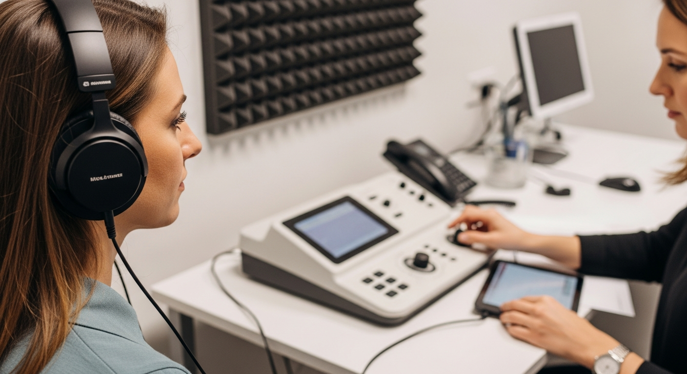 Além disso, a imitanciometria verifica a função do ouvido médio, incluindo o tímpano e os ossículos, revelando problemas como acumulação de líquido ou perfurações. Testes como as emissões otoacústicas (EOA) e o potencial evocado auditivo de tronco encefálico (PEATE) são frequentemente usados para avaliar a função das células ciliadas do ouvido interno e as vias neurais auditivas, respetivamente. Juntos, estes testes fornecem uma imagem abrangente da sua saúde auditiva e da acuidade da sua audição.