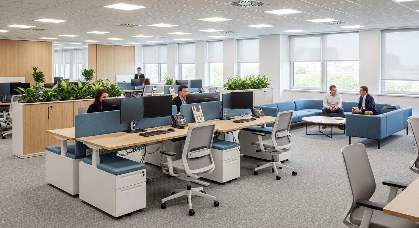 Designul interior al biroului trebuie să reflecte cultura organizațională, să inspire angajații și să sprijine obiectivele de productivitate. Integrarea elementelor de design modern, cum ar fi linii curate, culori neutre cu accente vibrante și materiale inovatoare (sticlă, metal, lemn reciclat), poate crea o atmosferă dinamică, profesională și primitoare. Pe lângă mobilier, aspecte precum iluminatul natural, care maximizează expunerea la lumină solară, și iluminatul artificial bine calibrat sunt cruciale pentru reducerea oboselii oculare. Plantele de interior nu doar îmbunătățesc calitatea aerului, dar adaugă și o notă de prospețime și vitalitate. Crearea unor zone de relaxare sau de socializare informale încurajează interacțiunea între colegi și oferă oportunități pentru scurte pauze esențiale pentru reîncărcarea energiei. Un design bine echilibrat îmbină estetica cu funcționalitatea, transformând biroul într-un loc unde angajații se simt energizați, motivați și confortabili, contribuind la o creștere a creativității și a performanței generale a echipei.