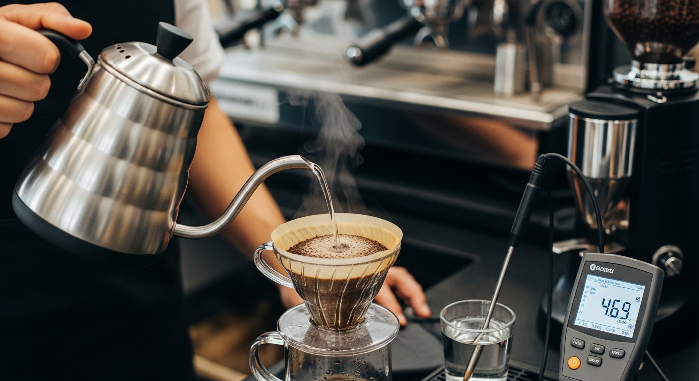 Temperatura apei este un alt factor cheie care interacționează cu calitatea acesteia. O temperatură optimă (între 90-96°C) este necesară pentru a extrage eficient compușii aromatici. Dacă apa este prea rece, extracția va fi sub-optimă, rezultând o cafea plată și acră. Dacă este prea fierbinte, poate arde cafeaua, ducând la un gust amar și ars. Când preparăm cafea acasă (homebrew), este important să considerăm nu doar temperatura, ci și puritatea apei. Multe metode de preparare, cum ar fi cele cu filtru (filter) sau cele manuale, beneficiază enorm de pe urma unei ape cu un profil mineral echilibrat, care permite boabelor să-și dezvăluie întregul potențial aromatic.