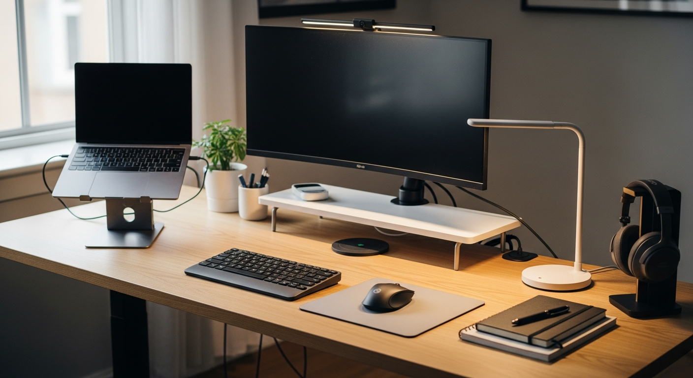 | Optimizarea Productivității | Încărcător wireless, hub USB-C, monitor ultrawide, sistem de management cabluri | Eficientizează sarcinile, reduce dezordinea, facilitează multitasking-ul, accelerează fluxul de lucru |