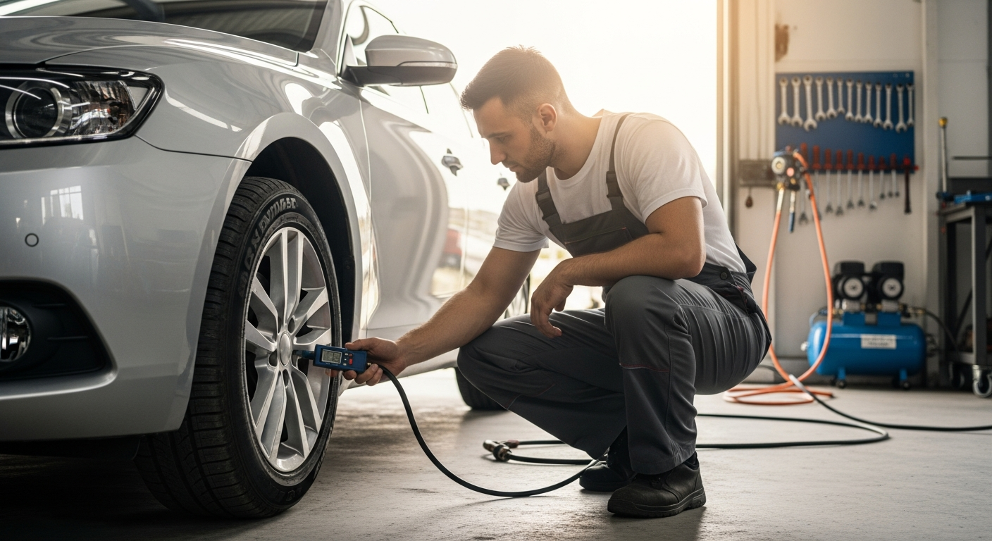 Nástroje a tipy na kontrolu tlaku v pneumatikách.
