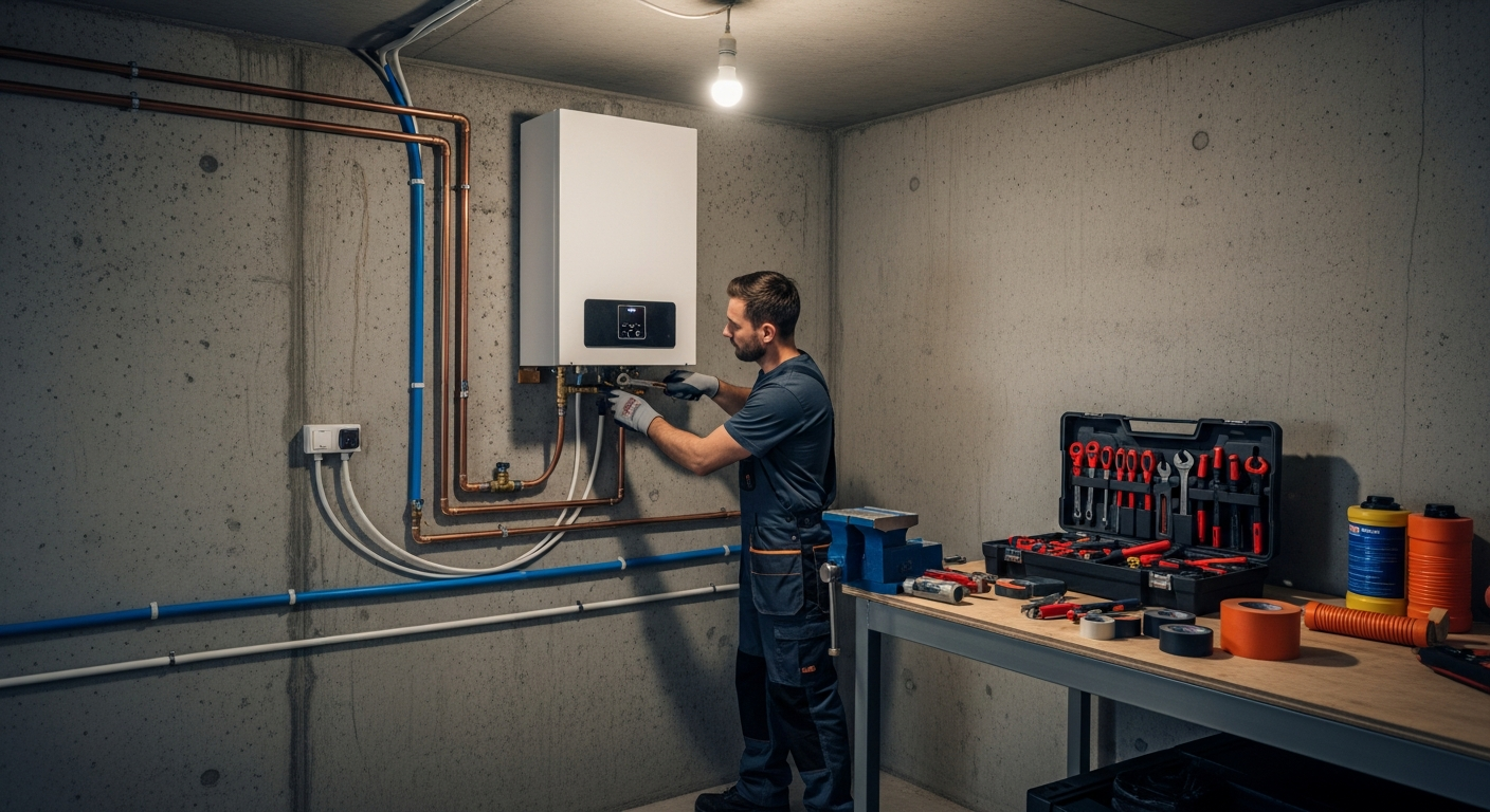 Namestitev sistema za ogrevanje vode je strokovno delo, ki ga je priporočljivo prepustiti usposobljenim vodovodarjem. Pravilna namestitev zagotavlja varno in učinkovito delovanje naprave ter preprečuje morebitne okvare in puščanja. Pri namestitvi je treba upoštevati vse varnostne predpise, zlasti pri plinskih in električnih napravah. Dostopnost za servisiranje in vzdrževanje mora biti prav tako zagotovljena, da se omogoči enostaven pregled in morebitna popravila.