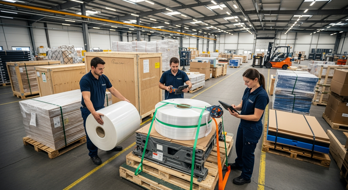 Izbira pravih embalažnih materialov je ključna. Za leseno embalažo, kot so zaboji in palete, je bistvena skladnost z mednarodnim standardom ISPM 15, ki določa postopke fitosanitarne obdelave za preprečevanje širjenja škodljivcev. Poleg lesa se pogosto uporabljajo tudi valovita lepenka, plastika, penasti vložki in različni zaščitni filmi, ki so prilagojeni specifičnim lastnostim in občutljivosti blaga. Vsaka pošiljka zahteva individualno oceno tveganja in temu prilagojeno rešitev pakiranja, da se zagotovi maksimalna varnost med celotno potjo.