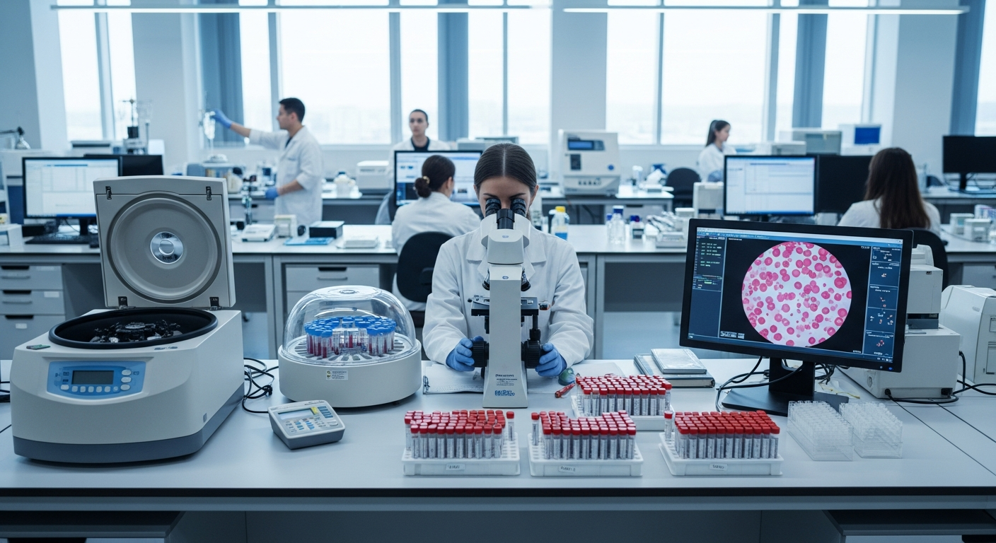 Diagnosen av MDS ställs vanligtvis av en hematolog, en specialist på blodsjukdomar, och innefattar en kombination av blodprover, benmärgsbiopsi och genetisk analys. Blodprover kan visa låga nivåer av en eller flera blodcellstyper. En benmärgsbiopsi är avgörande för att bedöma cellernas utseende (morfologi), andelen omogna celler (blaster) och eventuella kromosomala avvikelser. Dessa fynd, tillsammans med patientens symtom och sjukdomshistoria, ligger till grund för att klassificera MDS enligt WHO:s (Världshälsoorganisationens) system. Klassificeringen är viktig eftersom den vägleder behandlingsbeslut och ger en indikation om prognosen för det specifika tillståndet. Forskning inom diagnostik syftar kontinuerligt till att förbättra precisionen och förståelsen av MDS.