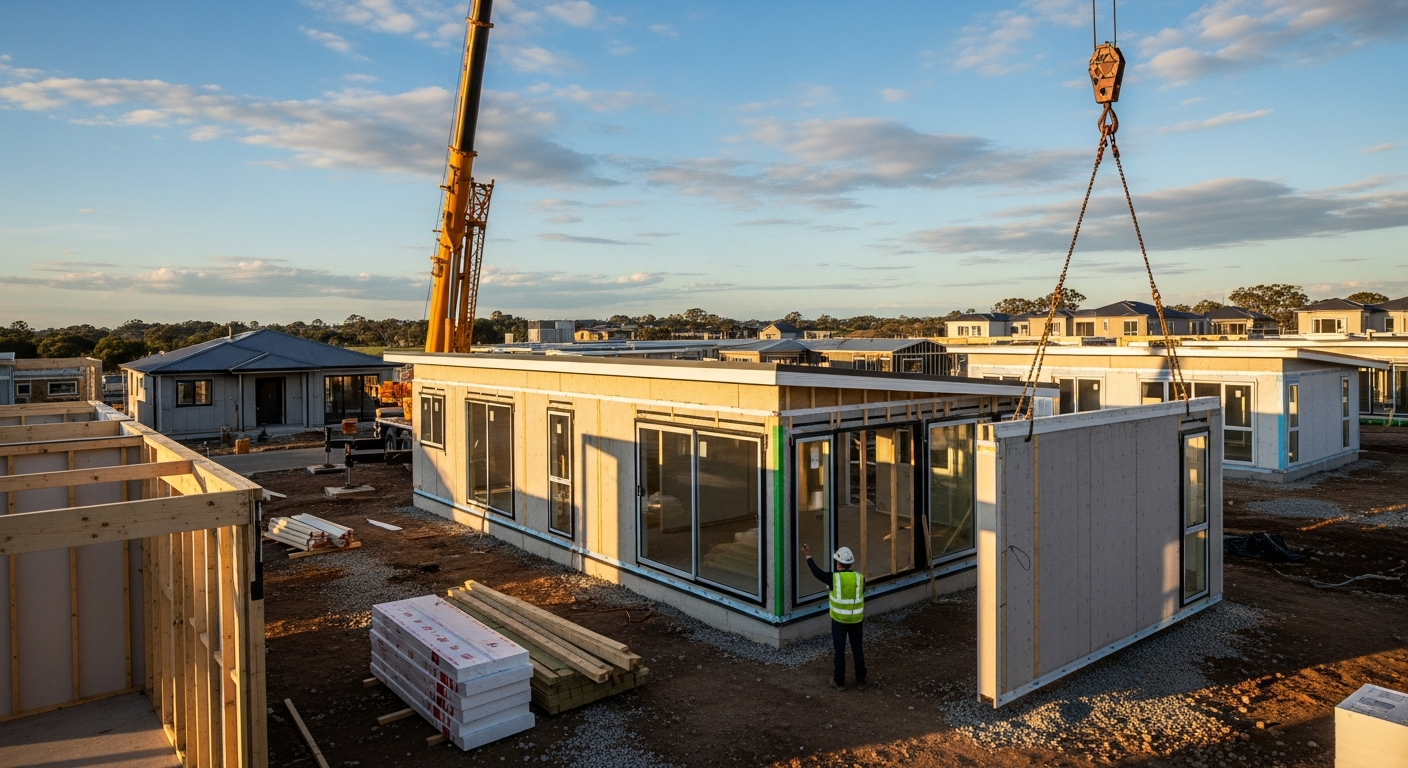 ในขณะเดียวกัน การเตรียมพื้นที่ก่อสร้าง จะดำเนินไปพร้อมกัน ซึ่งรวมถึงการปรับระดับดิน การวางฐานราก และการเตรียมระบบสาธารณูปโภค เมื่อชิ้นส่วนโมดูลผลิตเสร็จสิ้น จะถูก ขนส่ง ไปยังสถานที่ก่อสร้างอย่างระมัดระวัง และใช้เครนหรือเครื่องจักรอื่นๆ ในการ ประกอบ ชิ้นส่วนเหล่านี้เข้าด้วยกันอย่างรวดเร็วและแม่นยำ ขั้นตอนสุดท้ายคือ การเก็บรายละเอียด การเชื่อมต่อระบบสาธารณูปโภค การติดตั้งอุปกรณ์ภายใน และการตกแต่งภายนอก เพื่อให้บ้านพร้อมเข้าอยู่ ซึ่งกระบวนการทั้งหมดนี้ใช้เวลาน้อยกว่าการสร้างบ้านแบบดั้งเดิมอย่างเห็นได้ชัด