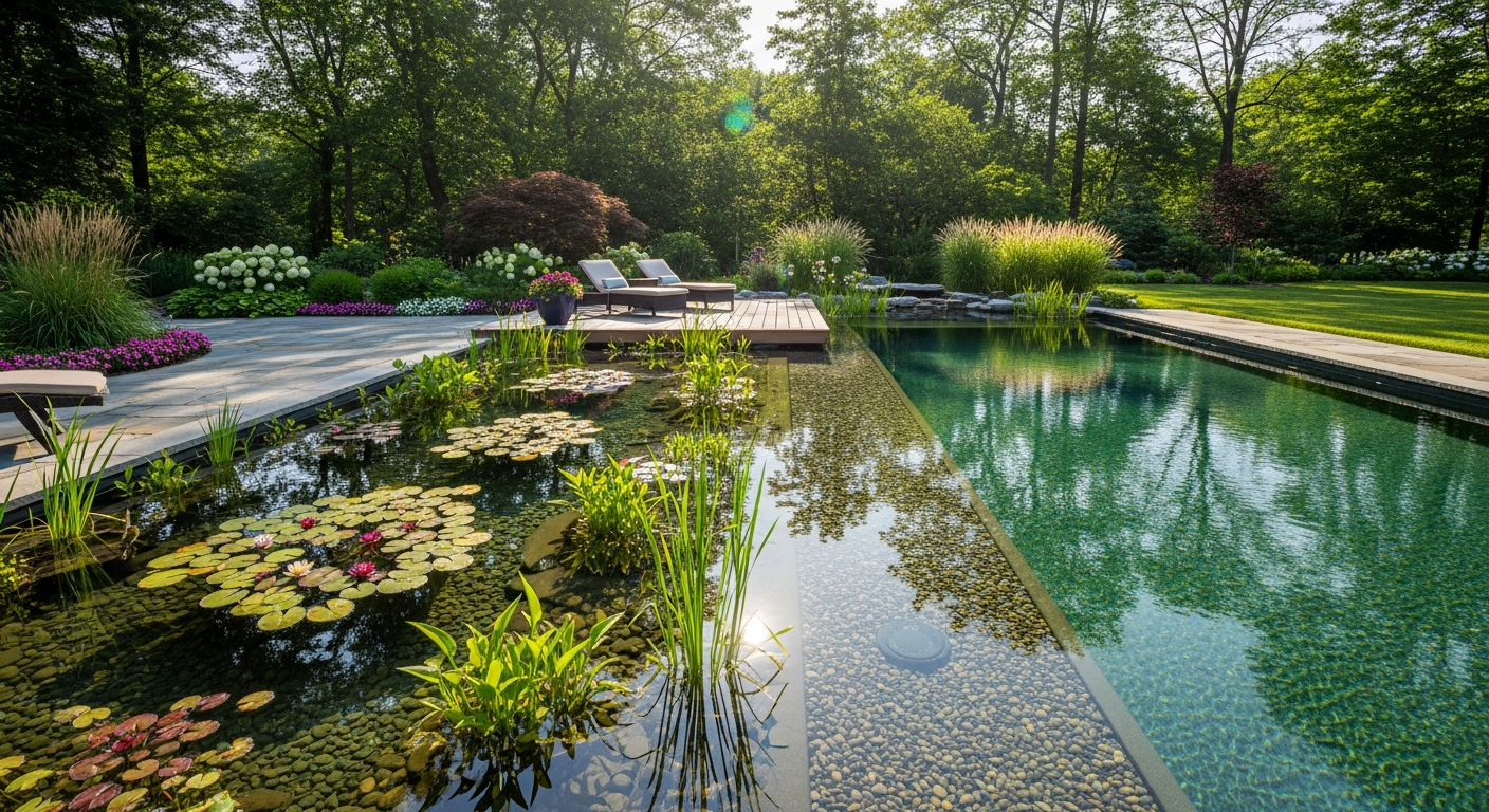 Басейн може стати центральним елементом зовнішнього простору, гармонійно інтегруючись у загальний ландшафтний дизайн. Це включає вибір відповідних рослин, освітлення, мощення та декоративних елементів, які доповнюють водну зону. Створення затишної зони для відпочинку з шезлонгами, парасольками та зовнішніми меблями підвищує функціональність простору. Продуманий ландшафтний дизайн не тільки покращує естетику вашого дому та саду, але й створює привабливу атмосферу для дозвілля та насолоди на свіжому повітрі.