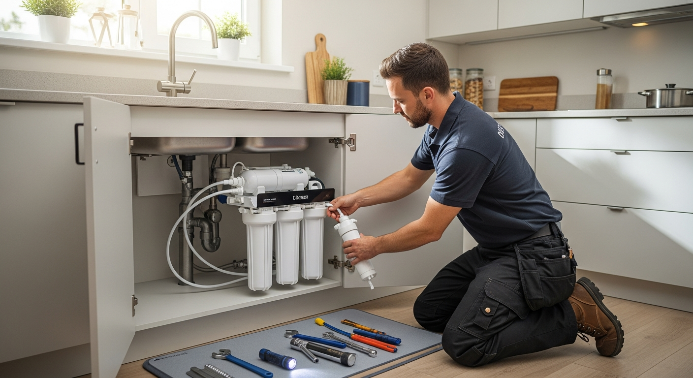 - 廚下型濾水器 (Under-Sink Filter):安裝在廚房水槽下方,通常有多級過濾,能有效去除更多污染物,如沉積物、氯氣、重金屬、囊孢菌等。不佔用檯面空間,過濾水量大,但安裝相對複雜。