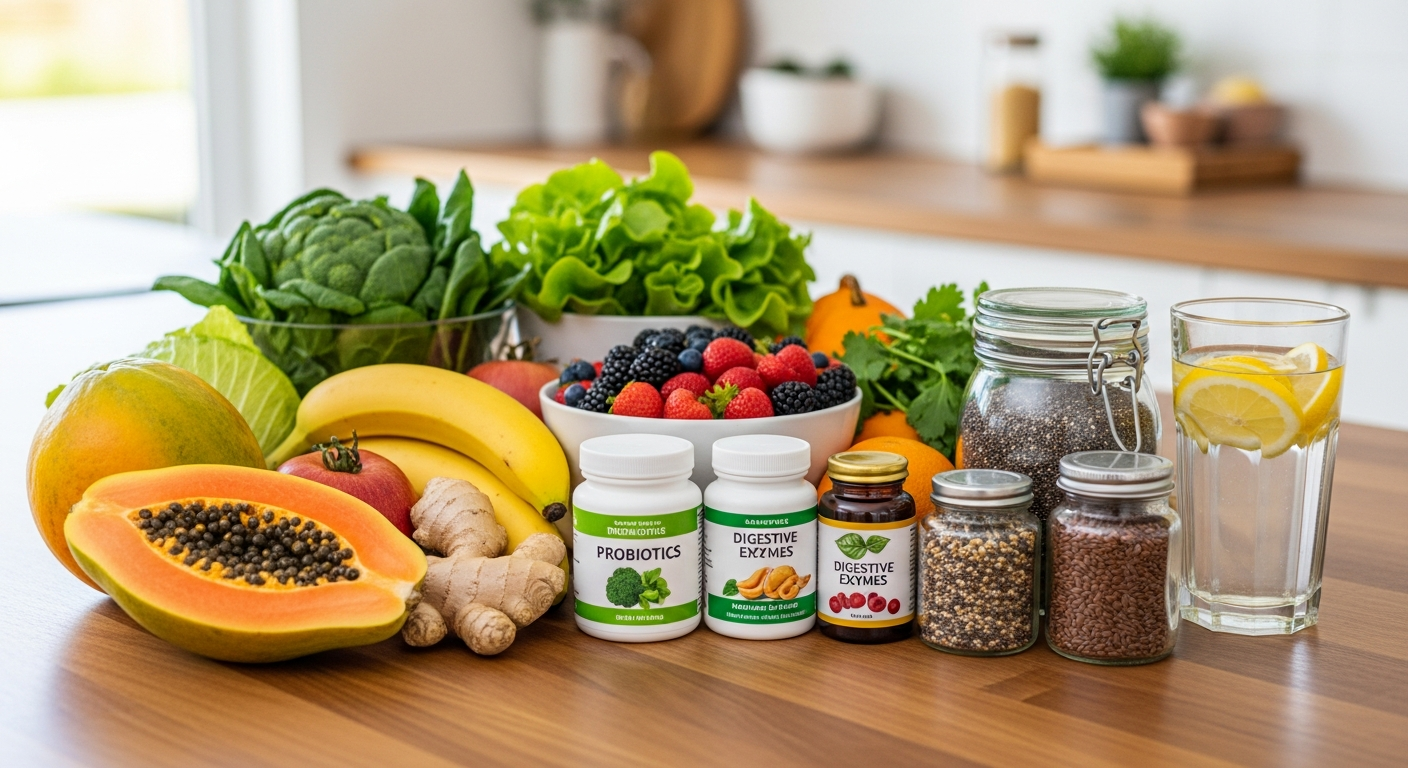 消化酵素是身體分解碳水化合物、蛋白質和脂肪等大分子食物以吸收營養的必要物質。當身體因年齡、壓力或某些健康狀況而無法產生足夠的消化酵素時,可能會導致食物消化不良,進而引發腹脹、脹氣、胃部不適和營養吸收不良。某些天然食物,如木瓜(含有木瓜蛋白酶)和鳳梨(含有鳳梨蛋白酶),天然富含消化酵素,有助於食物分解。此外,膳食纖維分為可溶性纖維和不可溶性纖維,兩者都對消化系統的健康至關重要。可溶性纖維(存在於燕麥、豆類、水果中)在腸道中形成凝膠狀物質,有助於軟化糞便,減緩糖分吸收,並餵養益生菌;而不可溶性纖維(存在於全穀物、蔬菜表皮中)則增加糞便體積,促進腸道蠕動,預防便秘。兩者共同作用,能有效支持規律的排便,減少消化不適。