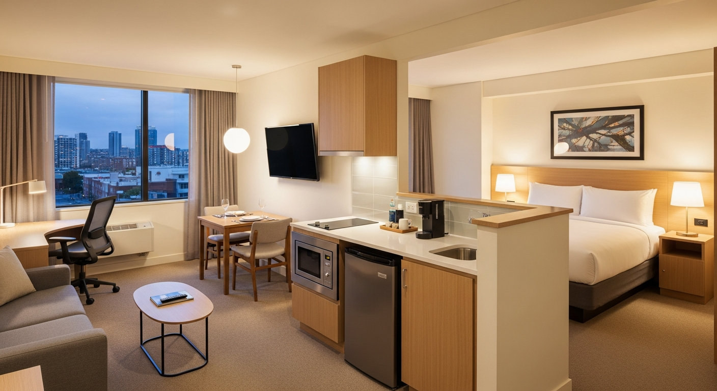 服務式公寓提供家具齊全的居住空間,通常包含獨立的臥室、客廳、廚房和衛浴設施,讓居住者能享受居家般的舒適與隱私。這些公寓通常配備家電、廚具,並提供定期的清潔服務、床單更換,甚至還有健身房、游泳房等公共設施,大大提升了居住品質。對於需要「長期住宿」或「延長停留」的人來說,服務式公寓提供了「生活」的便利,無需額外購買家具或處理繁瑣的租賃手續。寄宿公寓則可能提供更簡約的「居住」空間,通常是單間房,但同樣具備家具,並可能共享公共區域,是預算考量下的實惠選擇。